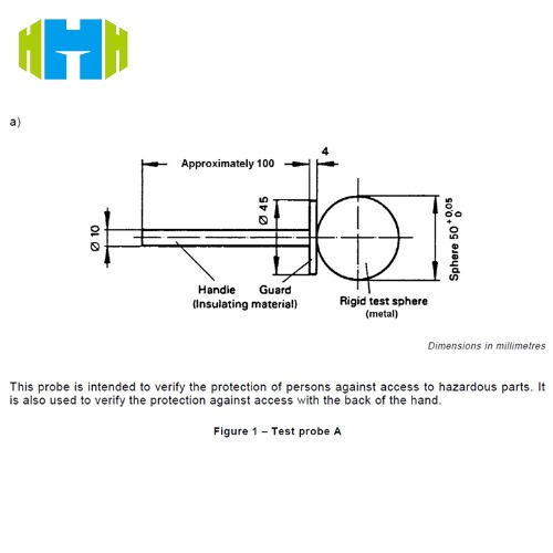 IEC 61032 ‘Protection of persons and equipment by enclosures – Probes for verification’ figure 1 test probe A.