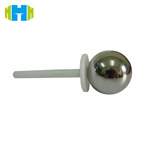 This probe made of stainless steel and nylon, the sphere made of stainless steel, the baffle and handle made of nylon. The diameter of sphere is 50mm. Baffle diameter is 45mm. Baffle thickness is 4 mm. Handle diameter is 10mm. Handle length is 100mm. It has no force, but there is an M6 threaded hole at the end of the handle to connect the push-pull meter.