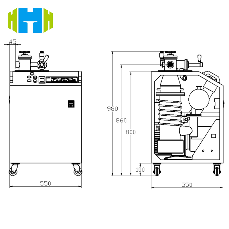 VEAT-002 diffusion pump unit is designed for vacuum tube furnaces, precision laboratory equipment and small closed containers. It is equipped with a 280L/s main pumping speed diffusion pump and a 3L/s front stage rotary vane pump. The ultimate vacuum degree reaches 2.5×10⁻⁴Pa, and supports flexible switching of KF40/KF25 dual exhaust ports. It is equipped with oil mist filtration, water temperature alarm and power-off automatic protection functions, and complies with ISO 9001 and IEC 60255 standards.